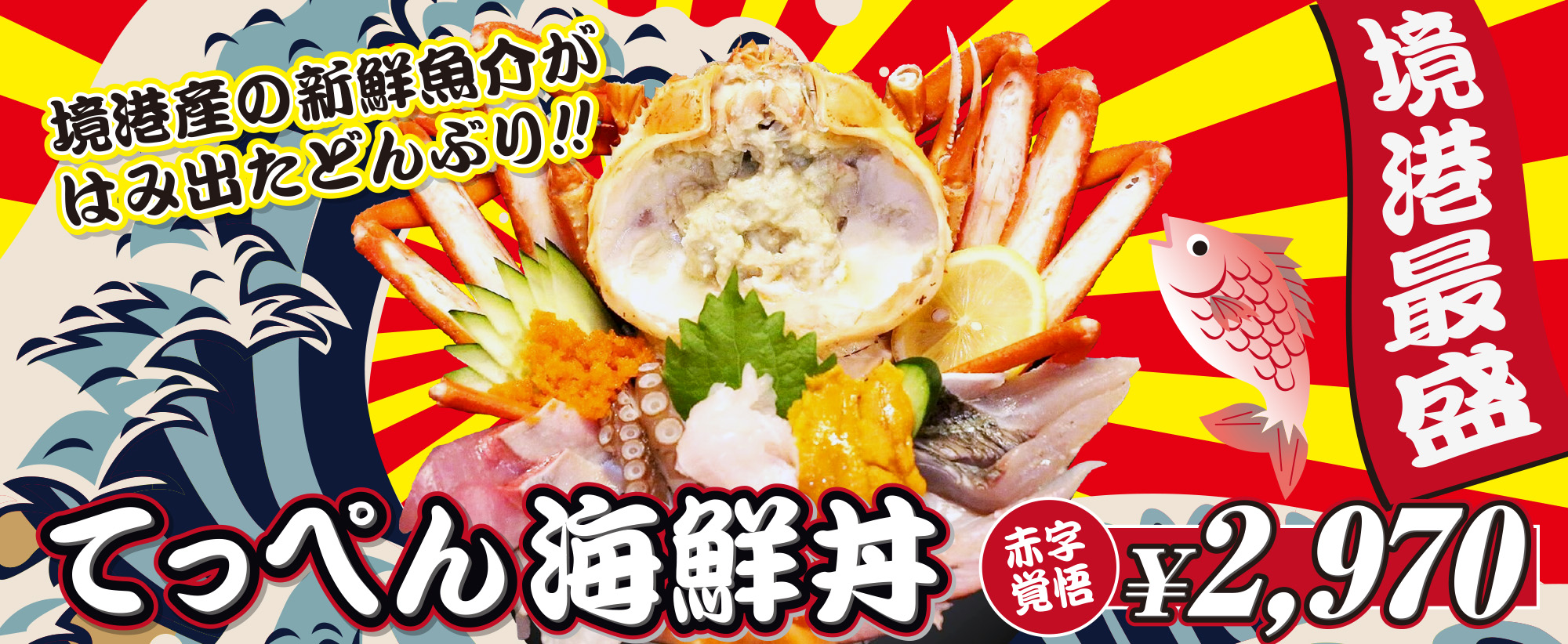 山陰境港の旬の食材を使った極上の新鮮魚介を使った海鮮丼をはじめ数多くのメニューを豊富に揃っております。ランチもディナーも自信あり!